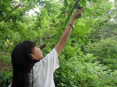 大量の桑の実もそのまま食べるのには限界があるので、今日は「ジャムにする~!」とゆいが頑張って集めています。