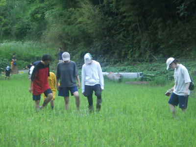 田んぼの草取りも毎週行っています。2反ある田んぼのすべてを踏んで雑草を沈めて行きます。地道な作業ですが、歌いながら、おしゃべりしながら頑張っています。たくさんお米をとるために張り切って行こう!