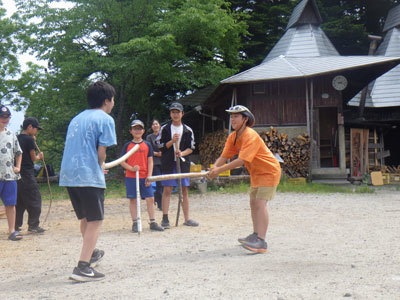 週末はキャンプをしました。とりあえず最初に、みんなで“チャンバラ大会”をしました(笑)自分のお気に入りの刀を持参していざ勝負。怪我をさせないように気をつけながら。