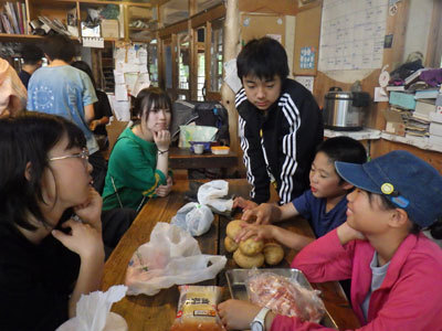 夜ご飯は火起こしして作ります。3チームに分かれ主菜、ご飯、汁ものを作ります。みんなに振る舞うご飯なので、メニューを決めから既に盛り上がっています!
