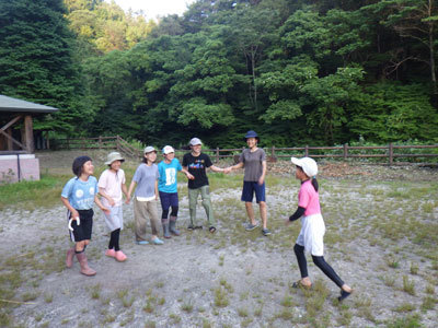 草取りが終わって「花いちもんめ」で楽しんでいる女の子たちです。笑い声が響き渡ります。心から笑う瞬間に作業の疲れも吹っ飛んでいるようです。「遊ぶ」ってすごいね!
