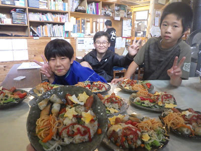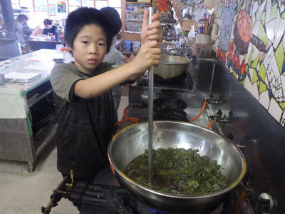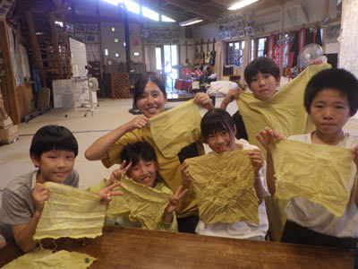 正解は、染め物でした。山に登っても染材のことを考えていたなんて!本当に染め物が大好きなこどもたちです。さぁ今回は何色に染まるかな?