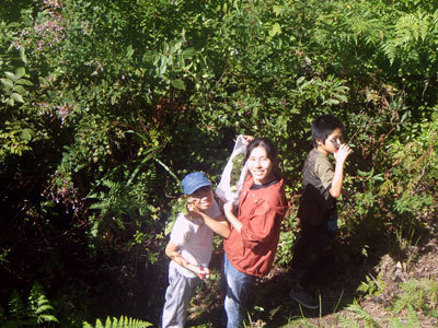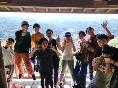 いい景色を眺めていたのもつかの間。おもむろに葉っぱを集め始めたこどもたち。一体何をするのでしょうか?