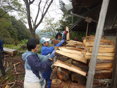 薪作業にも慣れてきて、だんだんと薪を積むのが上手になってきました。面をそろえながら崩れないように積み上げるのにもコツがいるのです。