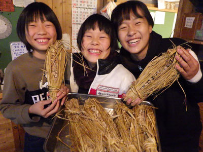 先週仕込んだ納豆の結果は・・・大成功!「ちゃんと糸ひいてる!」と大喜びです。「匂いはあまりしないけど味は納豆」「ワラには本当に納豆菌がいるんだ」とさまざまな気づきがありました。