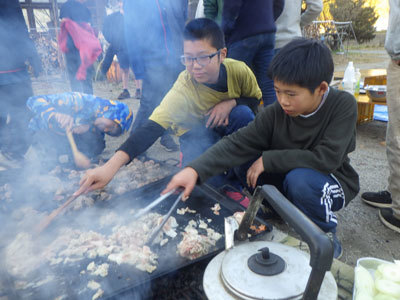 ご飯は外でBBQ。火おこしもご飯づくりも得意なこどもたちは準備もスムーズに進みます!みんなで協力して焼きながら、屋外でのご飯を楽しみました。