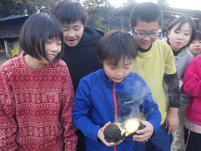 だいだらぼっちで育てたさつまいもで焼き芋を作りました。何度もやっているので段取りもばっちり。蜜がとろ~り、中はホクホクの芋が完成しました!