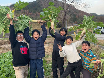 「せーの!」と大きな掛け声が畑から聞こえてきました。今日は大根の収穫の日です。思ったよりも大根を抜くのは大変で、みんなで力を合わせて引っ張りました。
