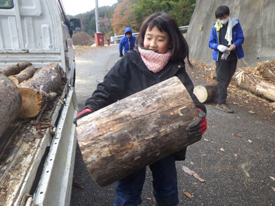薪作業では、自分の体ほどの薪をのはが運んでいます。次第に体の使い方もわかってきて、重い薪も難なく運べるようになってきました。