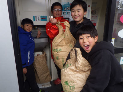 自分たちで今年育てた新米を精米しに行きました。「作ったお米を最初に見たい!」と張り切って出かけながらも、お米を目にして食べるのが待ちきれません。