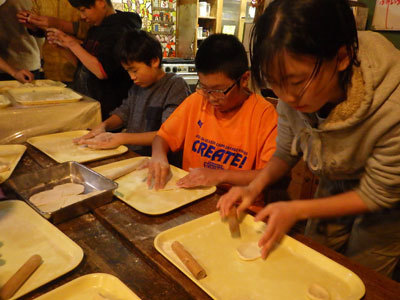 その日の夜は全員で餃子作りをしました。もちろん皮も具も手作りです。作る数は全部で240個!だんだんと数を重ねて皮を伸ばすコツもわかってきました。