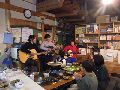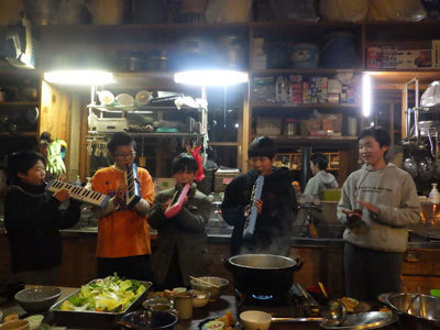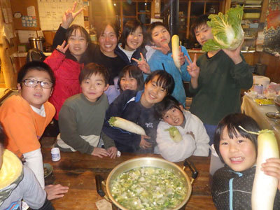 今日の夜ご飯は畑の白菜・大根・春菊を使った鍋!育てた野菜をともに味わう喜びは仲間と暮らしているからこそ実感できるものです。