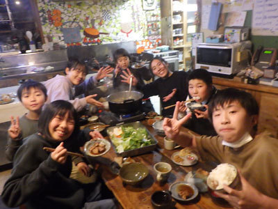 みんなで過ごす2学期最後の夜ご飯は、テーブルごとに鍋を囲んで食べました。楽しくおしゃべりをしながら、ゆったりとごはんの時間を楽しみました。