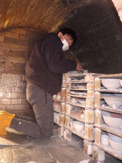 ねんは自分や仲間の作品を登り窯に詰める「窯詰め」をしています。みんなが一生懸命に作品を作っている様子を見てきたからこそ、割らないようにと緊張しながらも、バランスを崩さないよう慎重に積み上げていました。