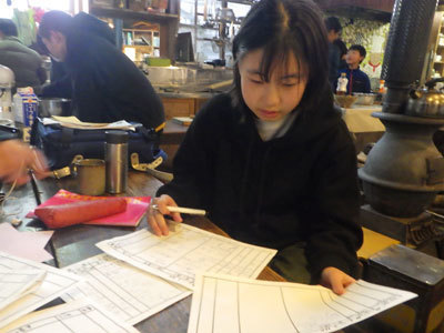 登り窯を終え、2年目のかりんは窯の様子について記録した用紙を整理しています。「来年度の役に立つように」と過去の記録はこどもからこどもへと引き継がれていくのです。