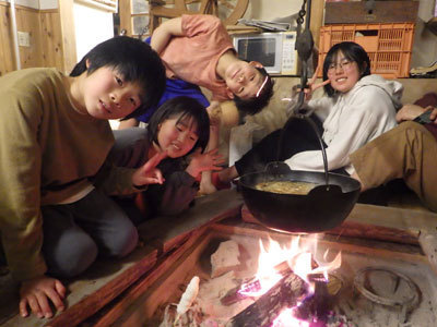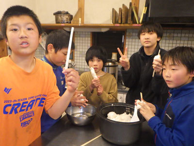 作っていたのは、きりたんぽです!「みんなで囲炉裏でご飯を食べたい!」という提案から企画されました。ご飯を味わいながらおしゃべりもして、身も心もあたたまる時間を過ごしました。