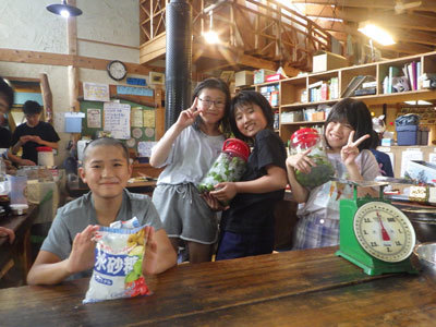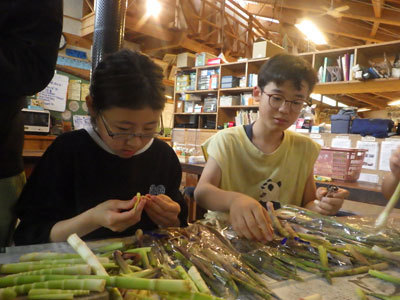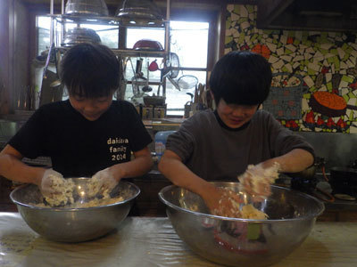 はれ一家が郷土料理のおやきと根曲竹の味噌汁を「みんなに食べてほしい!」と材料を持ってきてくれました。はれはうれしそうに「こうやってむくんだよ。」とみんなに教えてくれました。