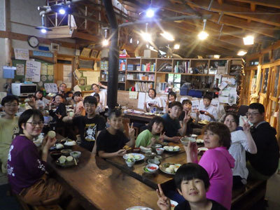 3種類のおやきと根曲竹の味噌汁が完成しました。どれも美味しくて会話が弾みます。おやきの中身を当てあったり、根曲竹を採る話を聞いたりと、はれのふるさとの話で持ち切りでした。