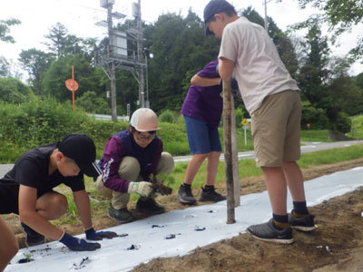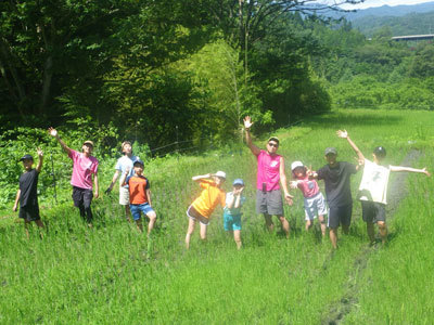 田植えの後の田んぼ作業は草取りです。稲の間をみんなで歩いて雑草を取り除きます。このひと手間で収穫量が大きく変わるのです。地道な作業ですが、みんなでおしゃべりしながらやると楽しいのです。