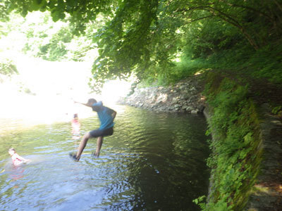 お腹いっぱいになった後は、川遊びです。夏のように暑い日でしたが、冷たい川に飛び込んで遊びました。働いて、美味しいご飯を食べて、遊び尽くす。最高の休日でした。
