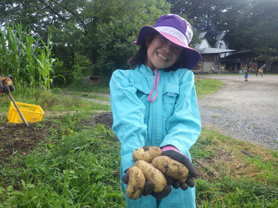 春に植えたじゃがいもを収穫しました。「いつのまにこんなにできてたの?!」掘り起こしてみてびっくり。「大きいのが採れたよ!」と1年目のかなにゃんは大喜びです。