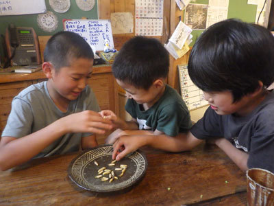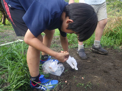 新たに耕したところには落花生を植えました。「ちゃんと芽が出るといいな」と期待を込めて丁寧に土をかぶせていきます。