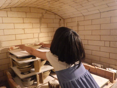 1学期にものづくり教室で作った陶芸作品を焼くため、窯に作品をつめました。自分の作品だけでなく仲間の作品もあるので、慎重に積んでいきます。