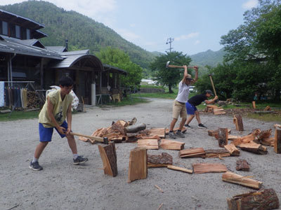敷地内にたまっていた薪を片付けるため、作業をおこないました。薪割りではパワフルな中学2年生たちが大活躍!頼もしいです。
