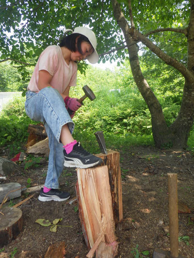 のははくさびを使い、オノでは割れない大きな薪を割ってくれました。それぞれに合った道具を使いながら、自分ができることを持ち寄って作業を進めます。