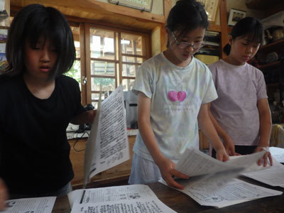 だいだらぼっちの様子や暮らしについて発信する『だいだらぼっち通信』を作成中!印刷した用紙を組み合わせて、自分たちの手で一つ一つ冊子にしていきます。