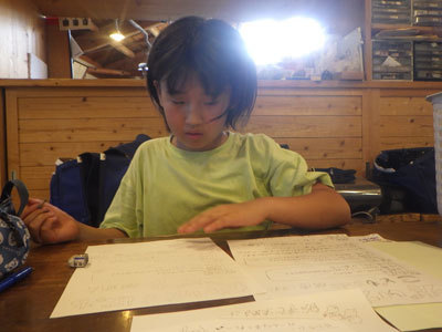 仲間集めのために10月にこどもたち企画で説明会をすることが決まりました。のはは少しでも多くの人に知ってほしいとチラシを作っています。これから始まる山賊キャンプに貼りだす予定です。