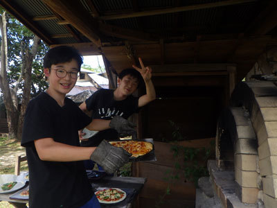 今年2度目のピザです。みんなビザが大好きです。最後のお楽しみもやっぱりピザになりました。手慣れた手つきで焼いていきます。安定の美味しさ。暑い夏でも関係ありません(笑)