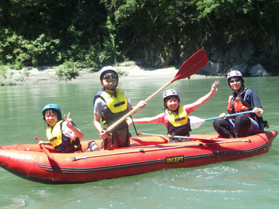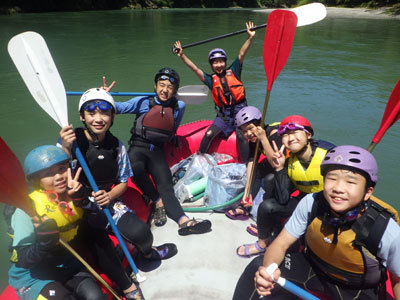 こちらはラフトボートのチーム!ラフトボートは大きいので、力を入れて漕がないといけません。