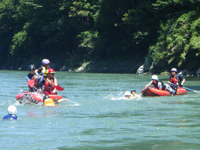 途中でボートから降りて、お互いのボートに遊びに行きます。水をかけ合ったり楽しそう。