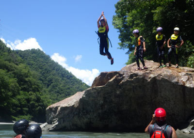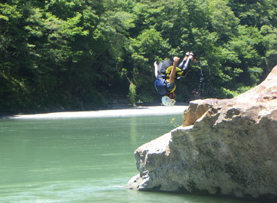 飛び込みポイントに到着!大きな岩から何度も飛び込みます。