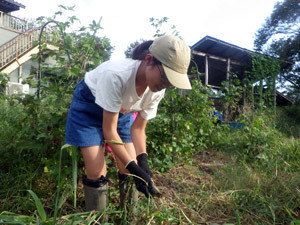 暮らしの作業はまだあります!夕方の涼しい時間を狙って、畑の草取りもやりました。作業続きでしたが、黙々と楽しそうにやっていたのが印象的です。