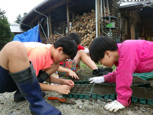 種から育てるものは直接植えずに、まずはポットで育てます。しっかり大きく育てるための大切なひと手間です。