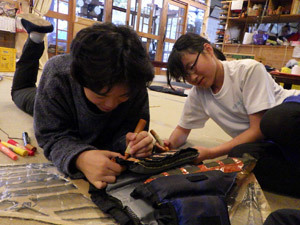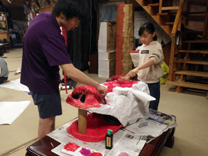 そしてさらに、参加してくれた人のゲン担ぎとして、獅子舞も作っています。「獅子舞に噛みつかれたらいいことがおこるらしい」と来てくれた人の喜ぶ顔をイメージして仕上げていきます。