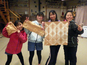草木染めが完成しました。こちらは玉ねぎの皮で染めた布、きれいな茶色に染まりました!