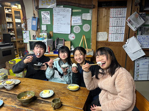 「おいしい!」「いくらでも食べれる!」自分たちで育て、収穫した新米の味に達成感が溢れます。20合炊いたお米も、13人でほとんど食べ尽くすほどの食べっぷりでした。