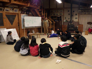 全員で過ごす最後の夜、2学期のふりかえりをしました。「どんなふりかえりをしたいか?」係のなおきとかなにゃんが、場のつくり方を考えて進行をしてくれて、良い締めくくりができました。