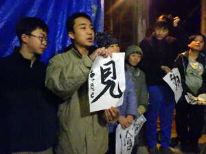 いよいよ、登り窯の火入れ式です。火入れ式は火入れ隊のこどもたちが計画してくれました。はじめに、窯焚きへの意気込みを一人ずつ発表します。あっきっきは「よく見る」を目標にしました。