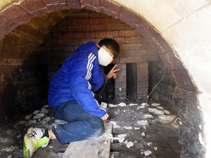 窯出しの後はきれいに中を掃除します。なんと、中に残った灰は松の釉薬になる貴重な灰なのです。