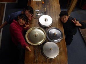 こちらは鍋蓋の修理です。取っ手が取れて使いづらかったものに、木の取っ手を作って取り付けました。意外と何でも修理できるのです!