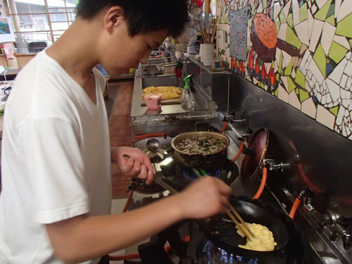 メニューはその日の冷蔵庫を見て、食材の多いもの、早く使わなければいけないものなどを考慮して、こどもたちが考えます。一年のはじめはひとりで作れないこどもも料理の本を参考にしたり、仲間やスタッフの教わりながら、少しずつ上達していきます。