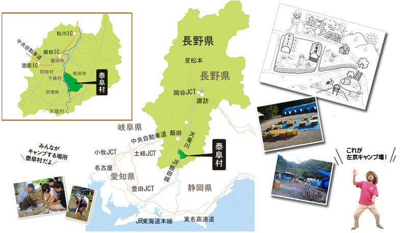 山賊キャンプを実施するのは長野県の南端、天竜川が底を流れる山間の泰阜村。そんな村にある山賊たちのアジトに流れているのは左京川。「川遊びするぞ!」と言ったらすぐに行ける最高のフィールドです。