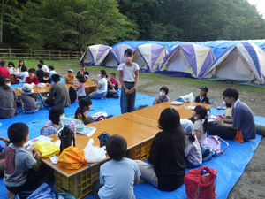 最後の夜はキャンプファイヤー。実行委員さんはすてきな点火式を考えてくれました。