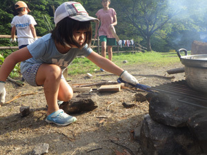 まずは朝ごはんづくりから。山賊キャンプでは食事のメニューはみんなで話し合って決めます。