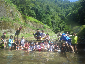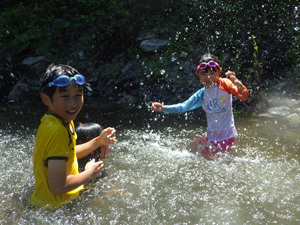 ご飯を食べたら川遊び。冷たい水のかけ合いが楽しそう!