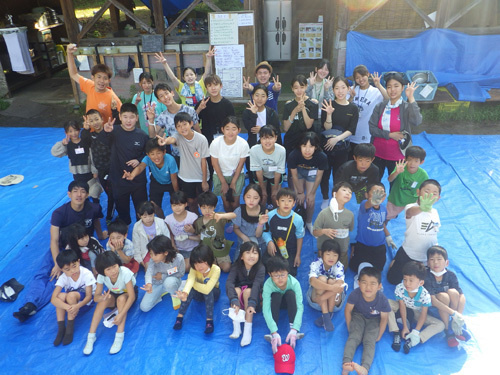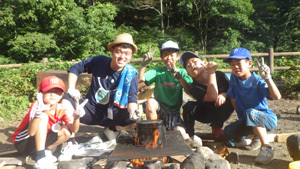 ご飯が完成したら、ごはんのうたを歌います。最後のごはんのうたはB4組全員で大合唱。キャンプ場にこどもたちの歌声が響き渡りました。